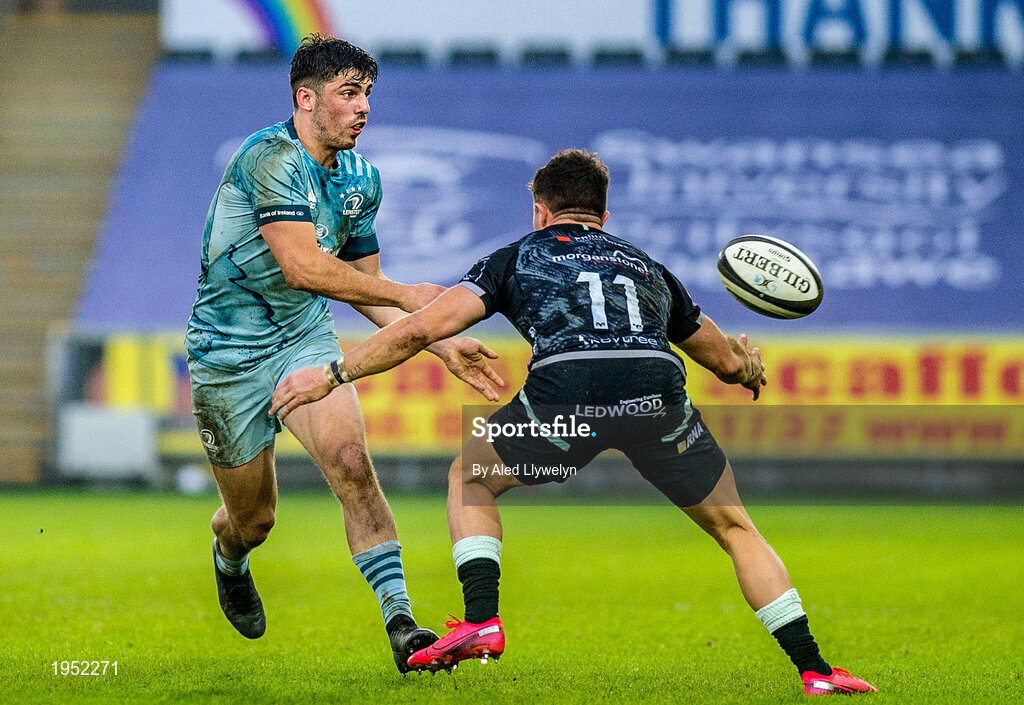 8 November 2020; Jimmy O’Brien of Leinster in action against Luke Morgan of Ospreys during the Guinness PRO14 match between Ospreys and Leinster at Liberty Stadium in Swansea, Wales. Photo by Aled Llywelyn/Sportsfile