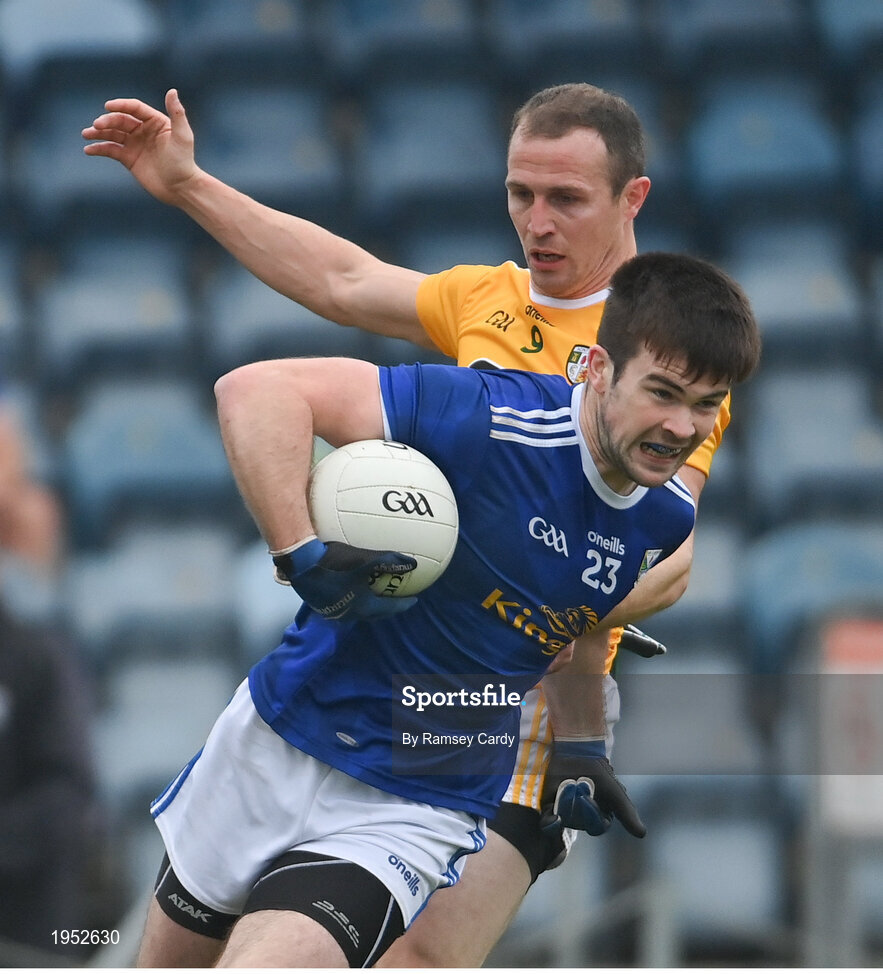 7 November 2020; Thomas Galligan of Cavan in action against Michael McCann of Antrim during the Ulster GAA Football Senior Championship Quarter-Final match between Cavan and Antrim at Kingspan Breffni in Cavan. Photo by Ramsey Cardy/Sportsfile