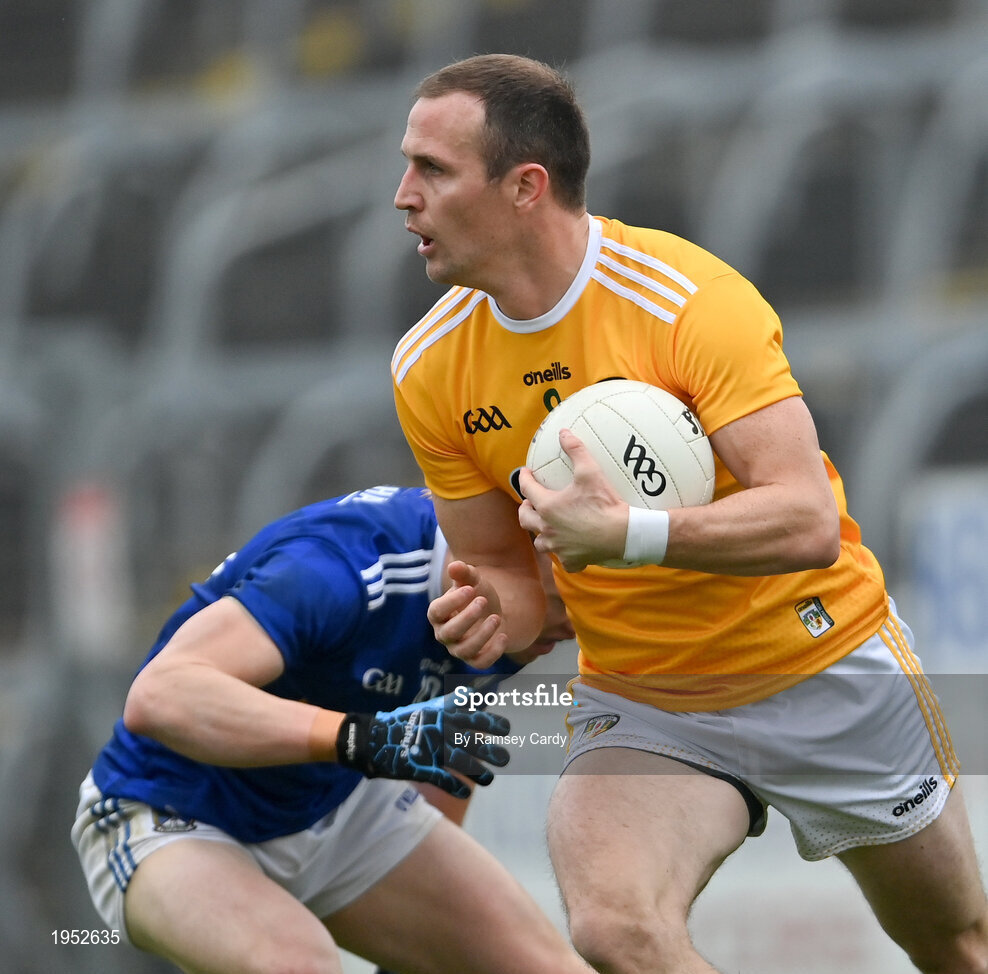 7 November 2020; Michael McCann of Antrim during the Ulster GAA Football Senior Championship Quarter-Final match between Cavan and Antrim at Kingspan Breffni in Cavan. Photo by Ramsey Cardy/Sportsfile