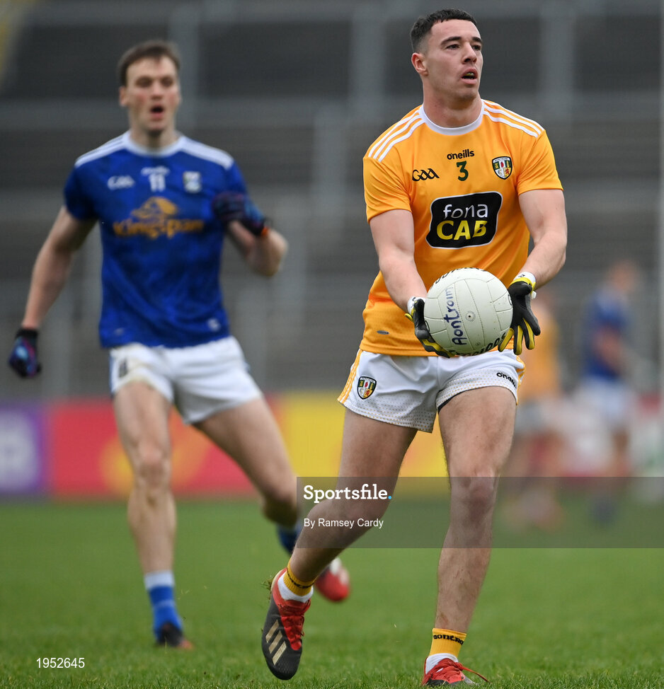 7 November 2020; Declan Lynch of Antrim during the Ulster GAA Football Senior Championship Quarter-Final match between Cavan and Antrim at Kingspan Breffni in Cavan. Photo by Ramsey Cardy/Sportsfile