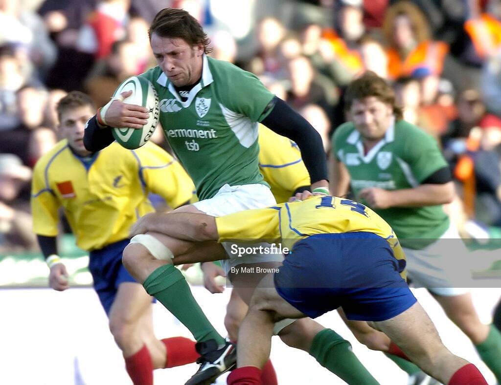 26 November 2005; Neil Best, Ireland, goes past the tackle of Gabriel Brezoianu to score his sides second try. permanent tsb International Friendly 2005-2006, Ireland v Romania, Lansdowne Road, Dublin. Picture credit: Matt Browne / SPORTSFILE
