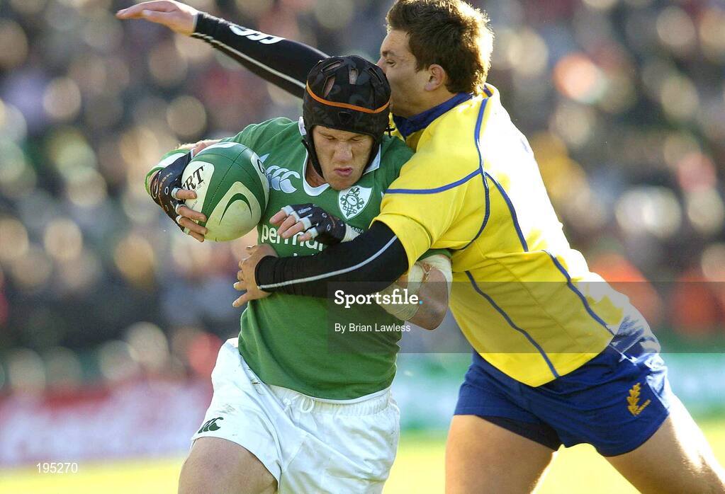 26 November 2005; Johnny O'Connor, Ireland, is tackled by Ionut Dimofte, Romania. permanent tsb International Friendly 2005-2006, Ireland v Romania, Lansdowne Road, Dublin. Picture credit: Brian Lawless / SPORTSFILE