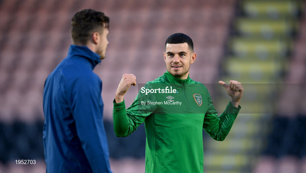 9 November 2020; John Egan, right, and Kevin Long during a Republic of Ireland training session at The Hive in Barnet, England. Photo by Stephen McCarthy/Sportsfile