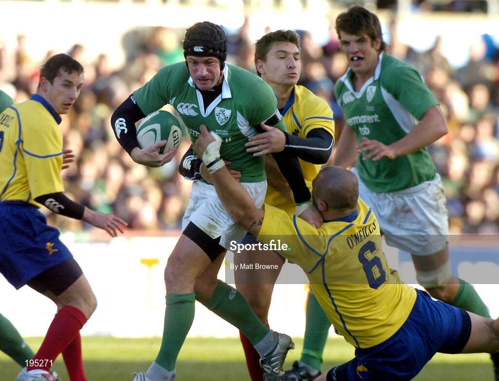 26 November 2005; David Humphreys, Ireland, is tackled by Florin Cordeanu, 6, and Ionut Dimofte, Romania. permanent tsb International Friendly 2005-2006, Ireland v Romania, Lansdowne Road, Dublin. Picture credit: Matt Browne / SPORTSFILE