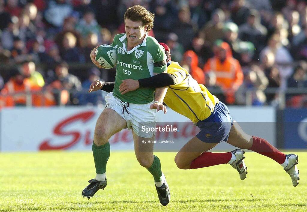 26 November 2005; Gordon D'Arcy, Ireland, is tackled by Catalin Fercu, Romania. permanent tsb International Friendly 2005-2006, Ireland v Romania, Lansdowne Road, Dublin. Picture credit: Brian Lawless / SPORTSFILE