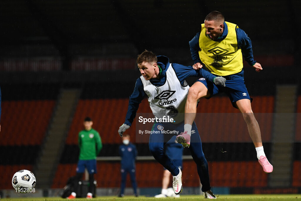 9 November 2020; James McCarthy, left, and Conor Hourihane during a Republic of Ireland training session at The Hive in Barnet, England. Photo by Stephen McCarthy/Sportsfile