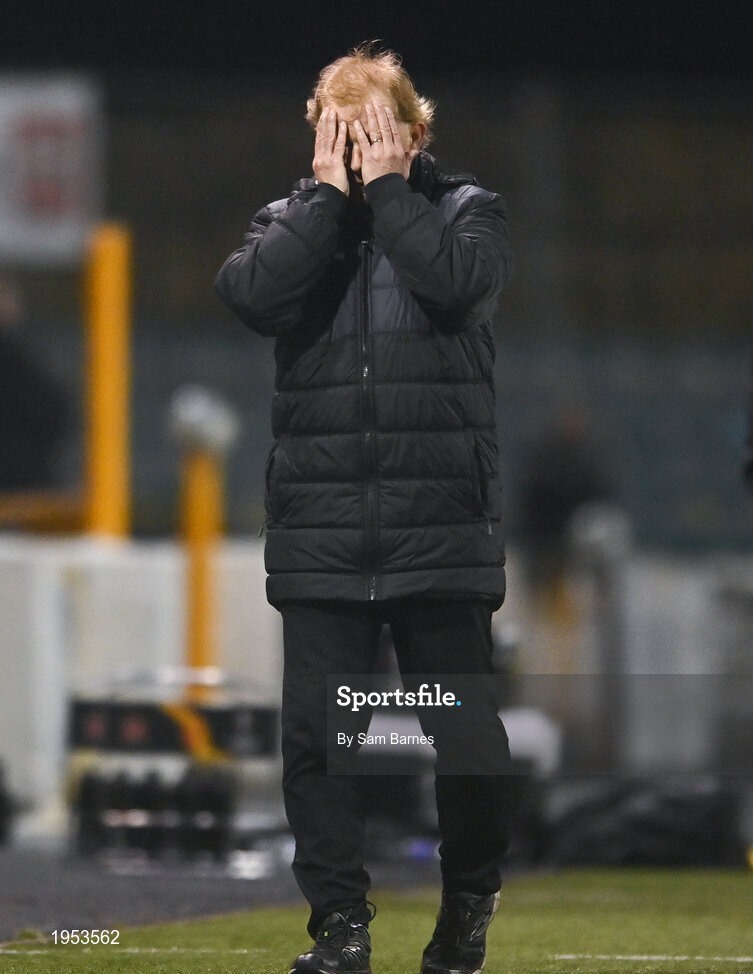 9 November 2020; Sligo Rovers manager Liam Buckley reacts to a missed chance during the SSE Airtricity League Premier Division match between Dundalk and Sligo Rovers at Oriel Park in Dundalk, Louth. Photo by Sam Barnes/Sportsfile