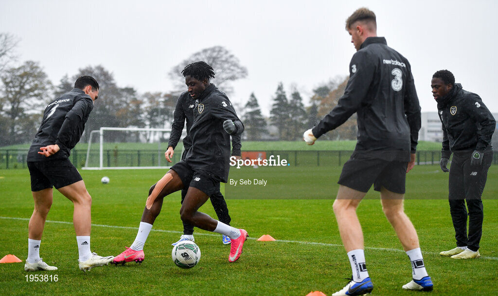 11 November 2020; Danny McNamara, left, and Joshua Kayode during a Republic of Ireland U21 training session at the FAI National Training Centre in Abbotstown, Dublin. Photo by Seb Daly/Sportsfile