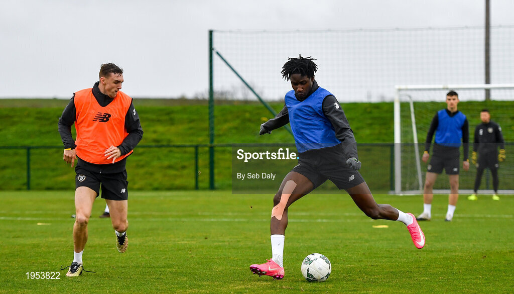 11 November 2020; Joshua Kayode, right, and Jack Taylor during a Republic of Ireland U21 training session at the FAI National Training Centre in Abbotstown, Dublin. Photo by Seb Daly/Sportsfile