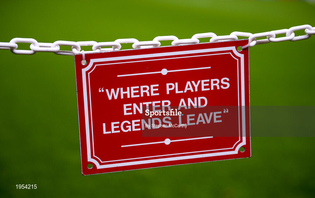 11 November 2020; A sign at the edge of the pitch prior to a Republic of Ireland training session at Wembley Stadium in London, England. Photo by Stephen McCarthy/Sportsfile