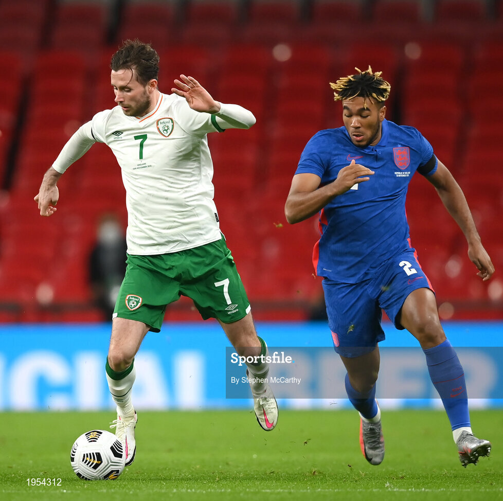 12 November 2020; Alan Browne of Republic of Ireland in action against Reece James of England during the International Friendly match between England and Republic of Ireland at Wembley Stadium in London, England. Photo by Stephen McCarthy/Sportsfile