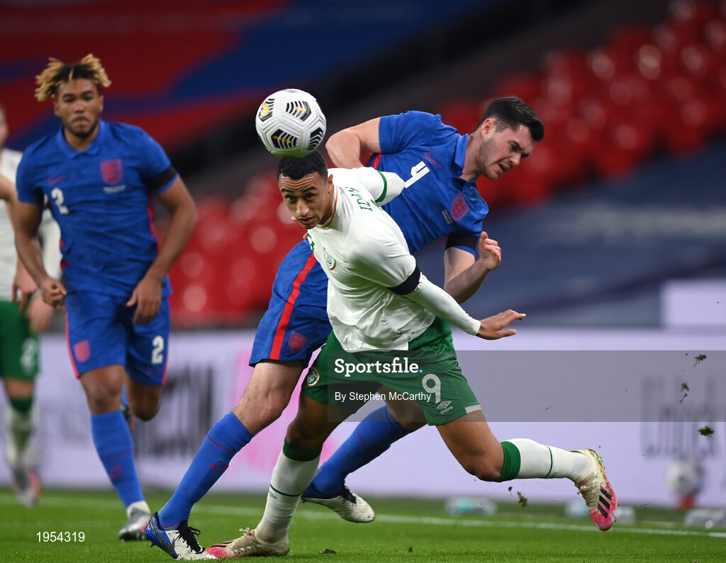 12 November 2020; Adam Idah of Republic of Ireland in action against Michael Keane of England during the International Friendly match between England and Republic of Ireland at Wembley Stadium in London, England. Photo by Stephen McCarthy/Sportsfile
