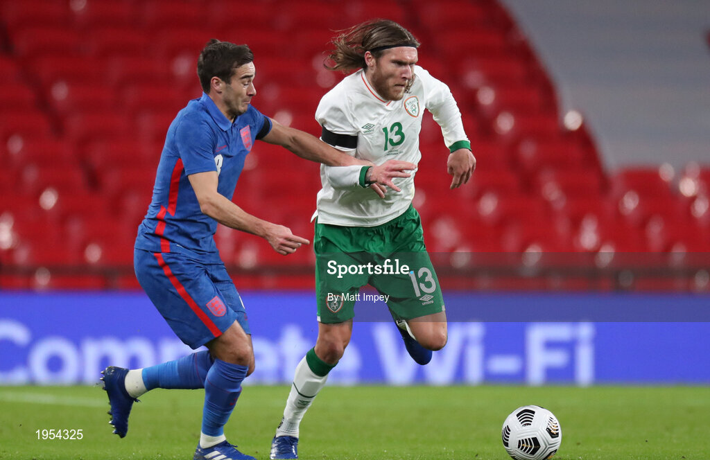 12 November 2020; Jeff Hendrick of Republic of Ireland in action against Harry Winks of England during the International Friendly match between England and Republic of Ireland at Wembley Stadium in London, England. Photo by Matt Impey/Sportsfile