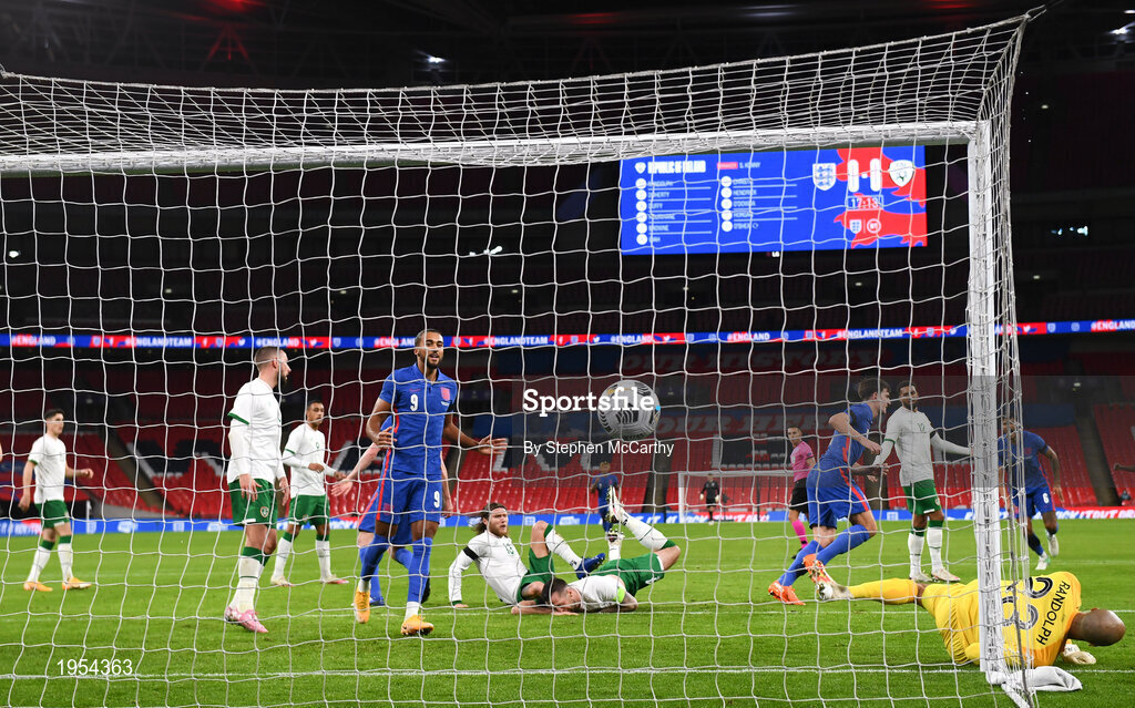 12 November 2020; Harry Maguire, right, of England turns to celebrate after scoring his side's first goal goal during the International Friendly match between England and Republic of Ireland at Wembley Stadium in London, England. Photo by Stephen McCarthy/Sportsfile