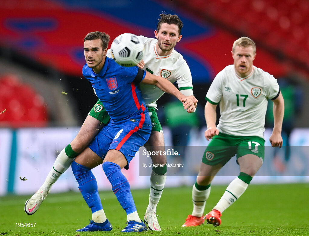 12 November 2020; Harry Winks of England in action against Alan Browne of Republic of Ireland during the International Friendly match between England and Republic of Ireland at Wembley Stadium in London, England. Photo by Stephen McCarthy/Sportsfile
