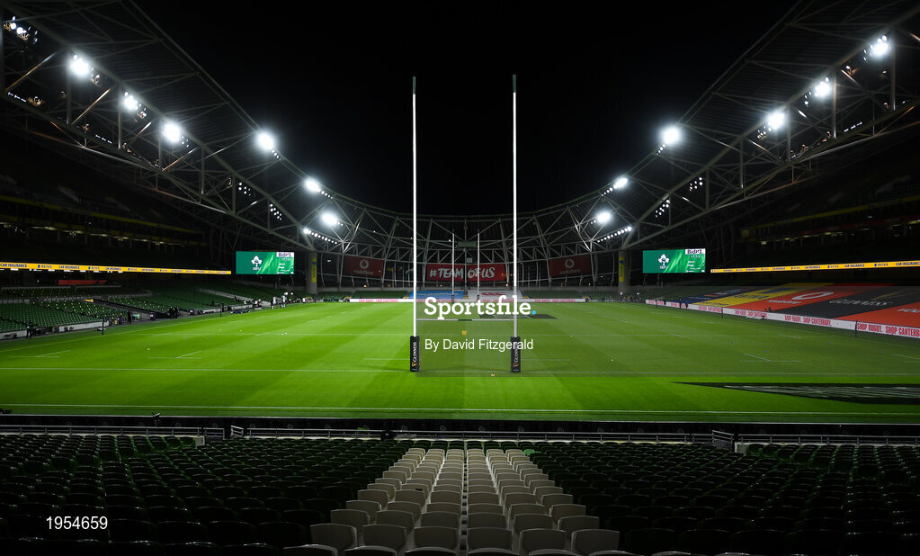13 November 2020; A general view prior to the Autumn Nations Cup match between Ireland and Wales at Aviva Stadium in Dublin. Photo by David Fitzgerald/Sportsfile