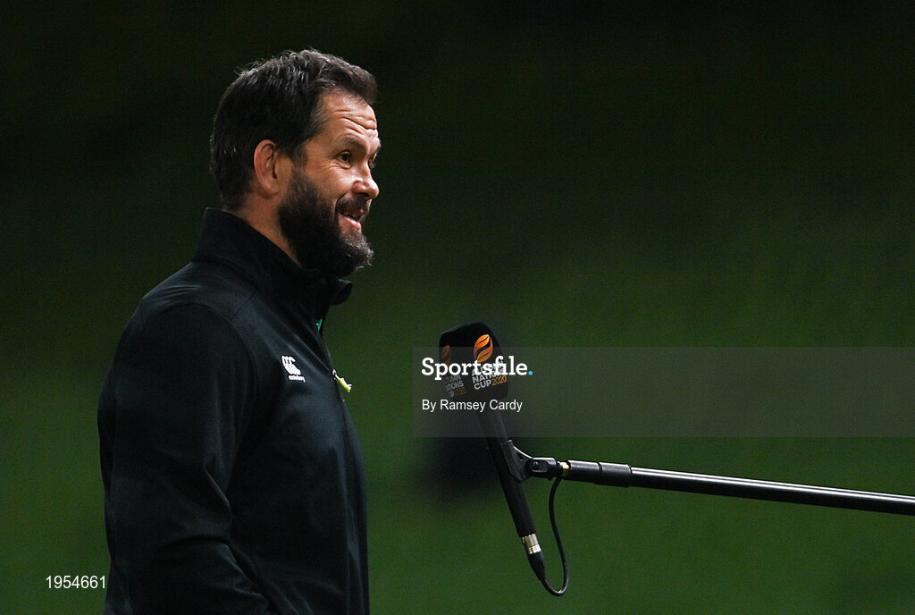 13 November 2020; Ireland head coach Andy Farrell ahead of the Autumn Nations Cup match between Ireland and Wales at Aviva Stadium in Dublin. Photo by Ramsey Cardy/Sportsfile