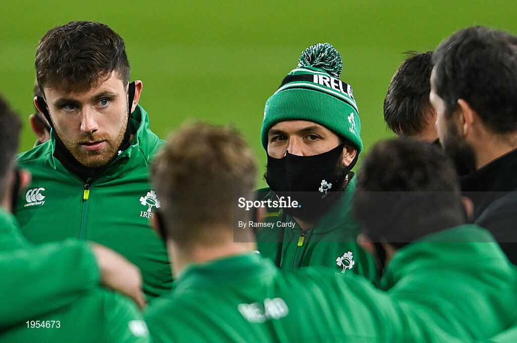 13 November 2020; Hugo Keenan, left, and Jamison Gibson-Park of Ireland ahead of the Autumn Nations Cup match between Ireland and Wales at Aviva Stadium in Dublin. Photo by Ramsey Cardy/Sportsfile