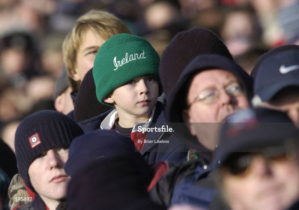 26 November 2005; A young Ireland fan keeps an eye on the action. permanent tsb International Friendly 2005-2006, Ireland v Romania, Lansdowne Road, Dublin. Picture credit: Brian Lawless / SPORTSFILE