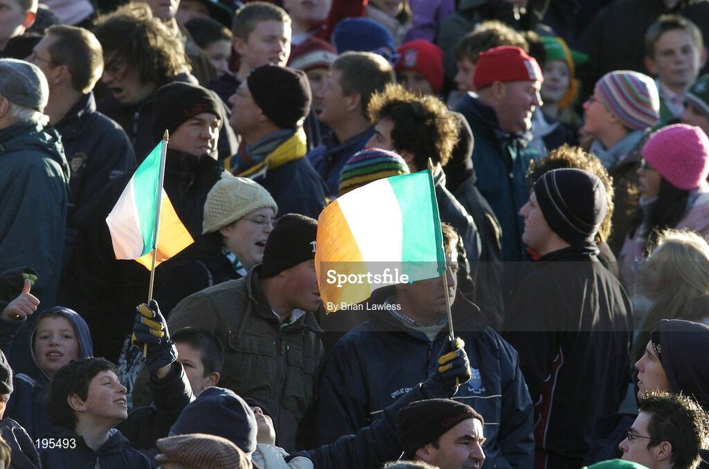 26 November 2005; Fans fly their flags. permanent tsb International Friendly 2005-2006, Ireland v Romania, Lansdowne Road, Dublin. Picture credit: Brian Lawless / SPORTSFILE