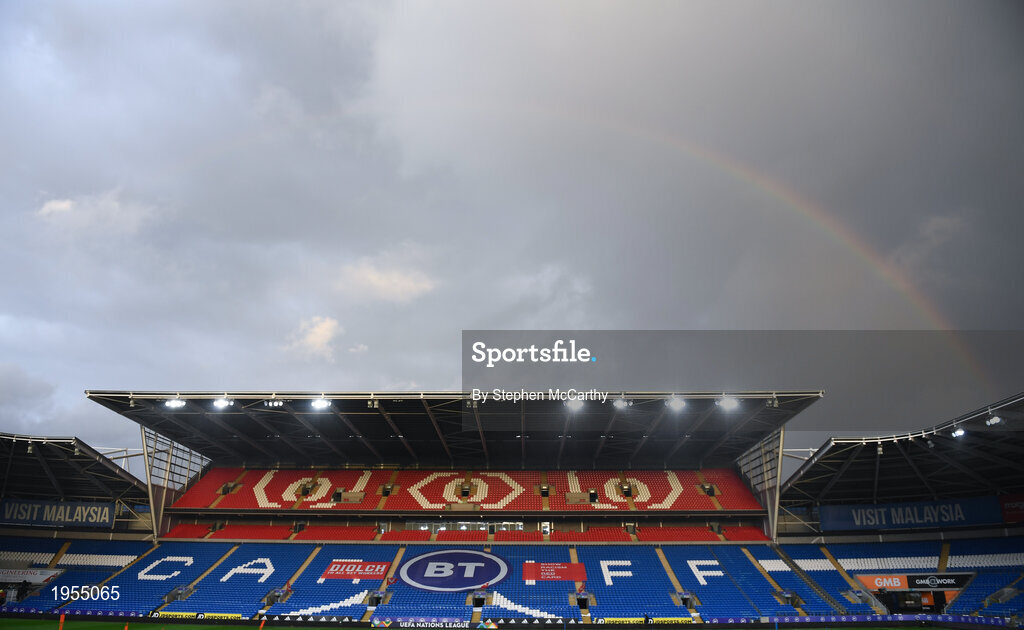 14 November 2020; A rainbow is seen above the Cardiff City stadium prior to a Republic of Ireland training session at Cardiff City Stadium in Cardiff, Wales. Photo by Stephen McCarthy/Sportsfile