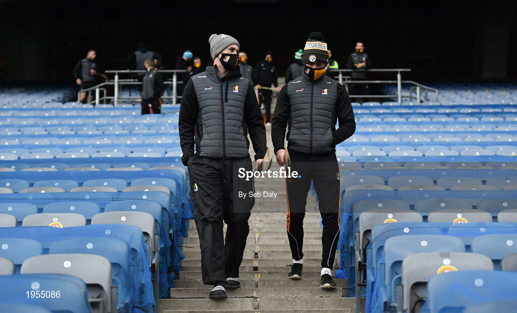14 November 2020; Joey Holden, left, and Cillian Buckley of Kilkenny prior to the Leinster GAA Hurling Senior Championship Final match between Kilkenny and Galway at Croke Park in Dublin. Photo by Seb Daly/Sportsfile