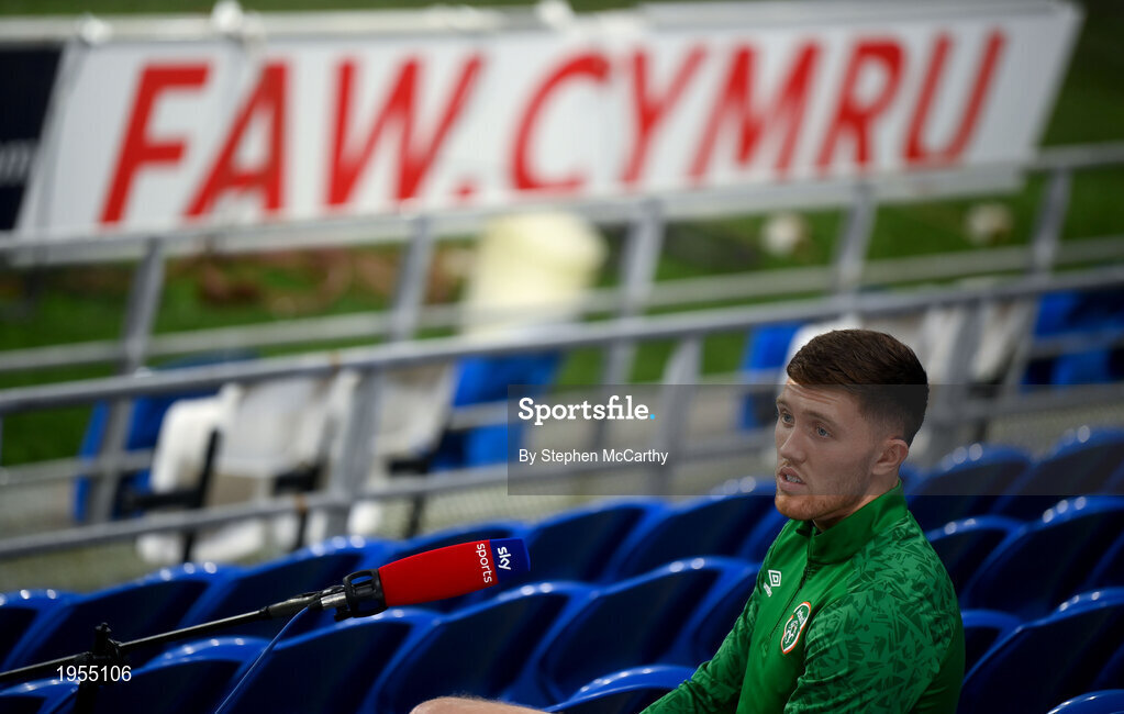 14 November 2020; Dara O'Shea speaking to Sky Sports prior to a Republic of Ireland training session at Cardiff City Stadium in Cardiff, Wales. Photo by Stephen McCarthy/Sportsfile