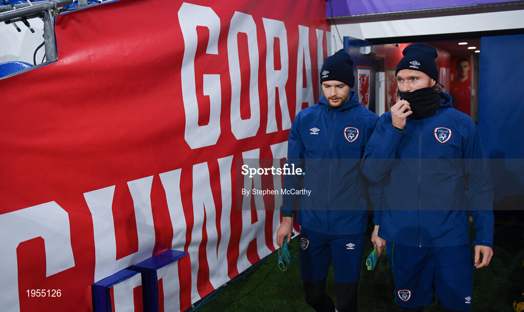 14 November 2020; Caoimhin Kelleher, left, and Jeff Hendrick prior to a Republic of Ireland training session at Cardiff City Stadium in Cardiff, Wales. Photo by Stephen McCarthy/Sportsfile