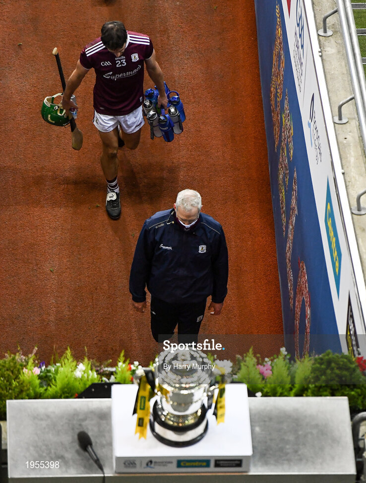 14 November 2020; Galway manager Shane O'Neill and David Burke of Galway walk below the Bob O'Keeffe Cup following defeat in the Leinster GAA Hurling Senior Championship Final match between Kilkenny and Galway at Croke Park in Dublin. Photo by Harry Murphy/Sportsfile