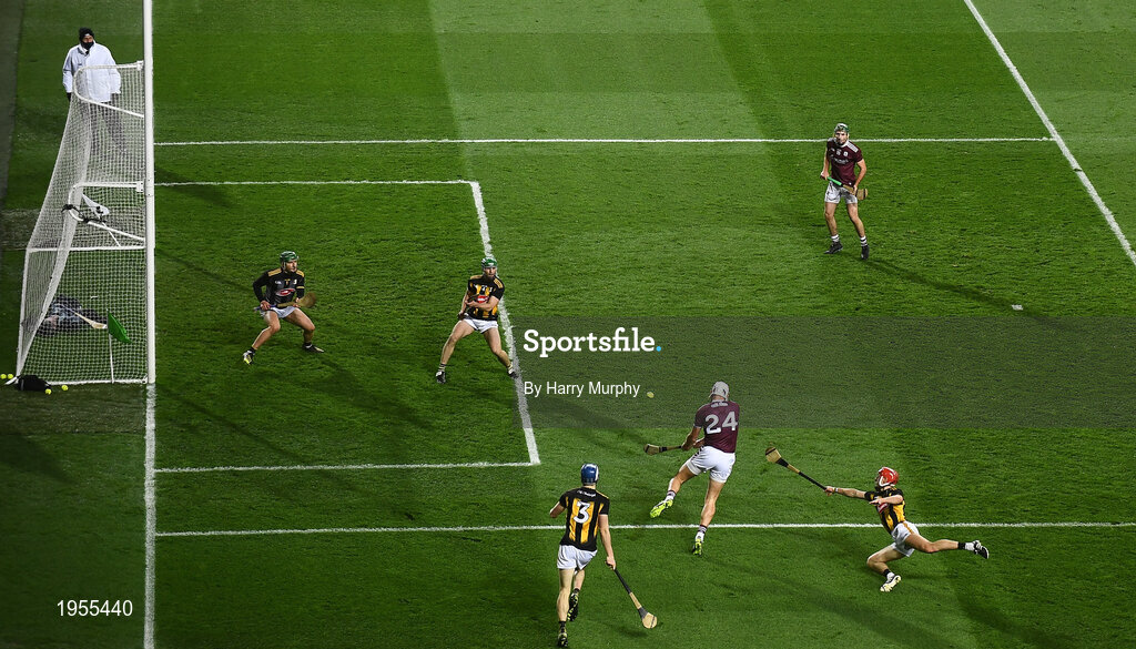 14 November 2020; Jason Flynn of Galway, 24, has a shot on goal saved by Eoin Murphy of Kilkenny during the Leinster GAA Hurling Senior Championship Final match between Kilkenny and Galway at Croke Park in Dublin. Photo by Harry Murphy/Sportsfile