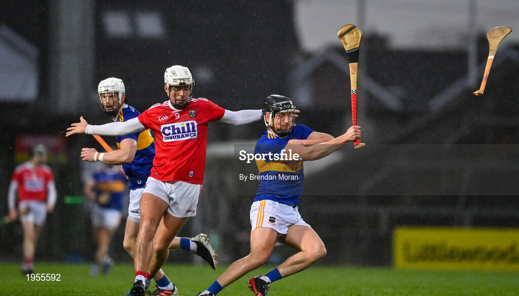 14 November 2020; Dan McCormack of Tipperary is tackled by Luke Meade of Cork during the GAA Hurling All-Ireland Senior Championship Qualifier Round 2 match between Cork and Tipperary at LIT Gaelic Grounds in Limerick. Photo by Brendan Moran/Sportsfile