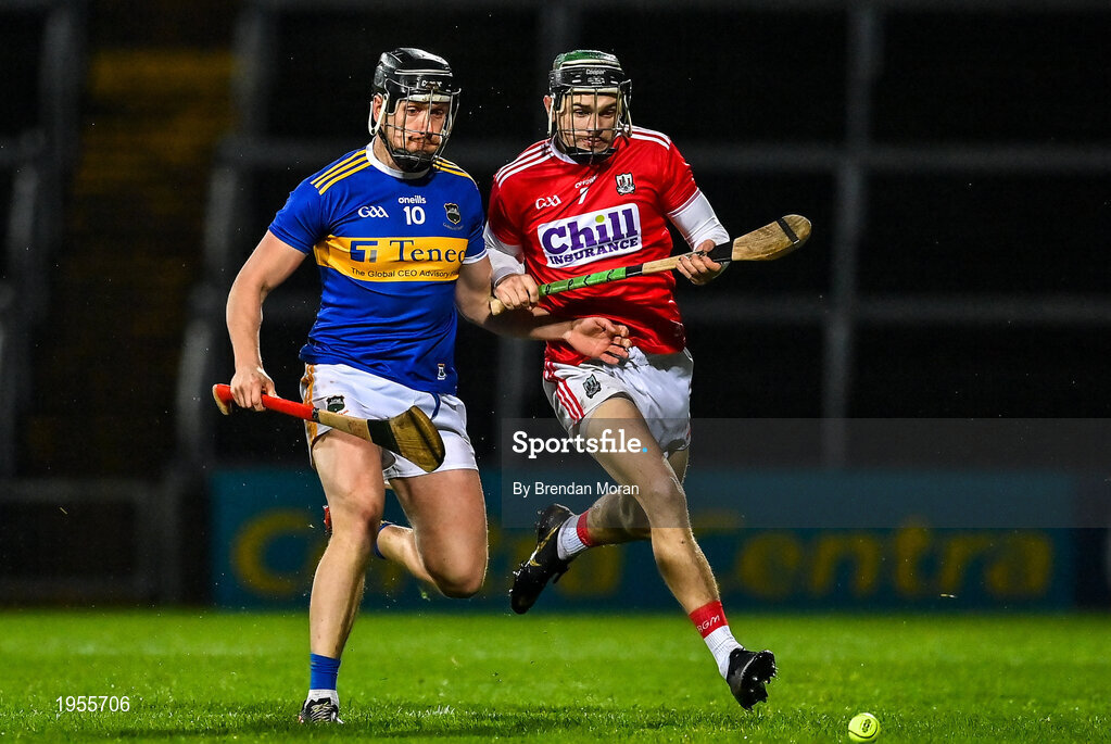 14 November 2020; Dan McCormack of Tipperary in action against Mark Coleman of Cork during the GAA Hurling All-Ireland Senior Championship Qualifier Round 2 match between Cork and Tipperary at LIT Gaelic Grounds in Limerick. Photo by Brendan Moran/Sportsfile