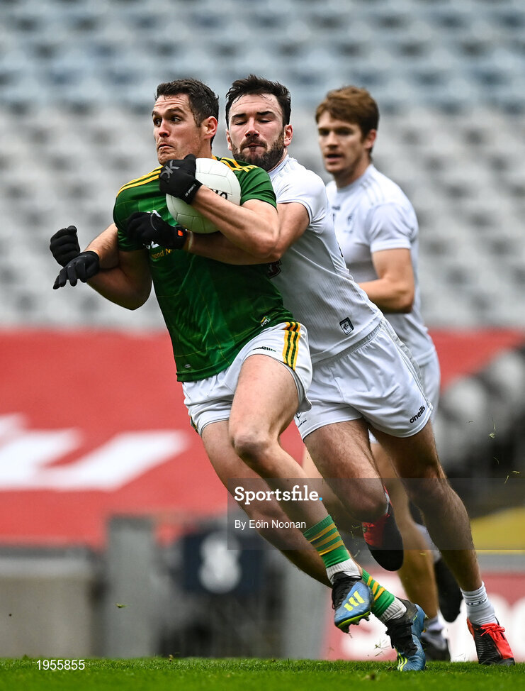 15 November 2020; Bryan Menton of Meath is tackled by Fergal Conway of Kildare during the Leinster GAA Football Senior Championship Semi-Final match between Kildare and Meath at Croke Park in Dublin. Photo by Eóin Noonan/Sportsfile