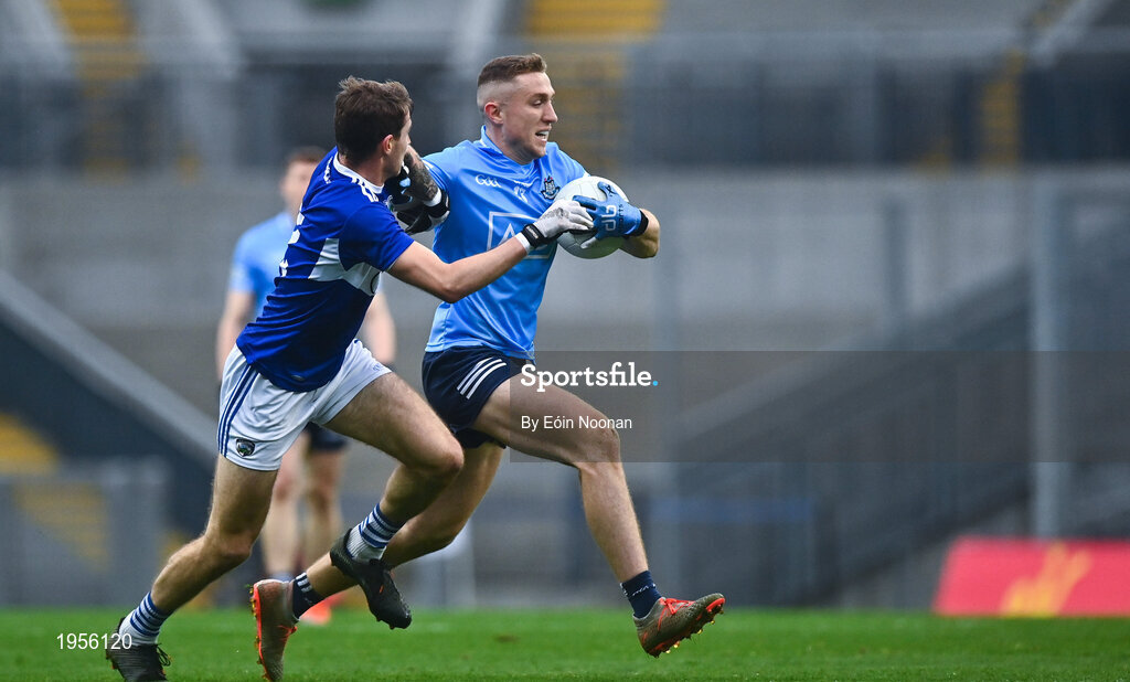 15 November 2020; Paddy Small of Dublin in action against Trevor Collins of Laois during the Leinster GAA Football Senior Championship Semi-Final match between Dublin and Laois at Croke Park in Dublin. Photo by Eóin Noonan/Sportsfile
