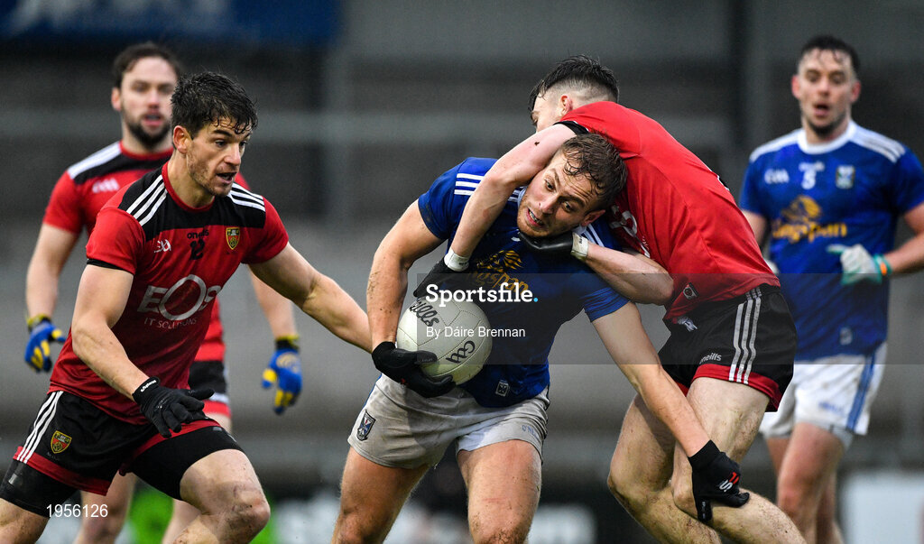 15 November 2020; Pádraig Faulkner of Cavan in action against Conor Poland, left, and Ceilium Doherty of Down during the Ulster GAA Football Senior Championship Semi-Final match between Cavan and Down at Athletic Grounds in Armagh. Photo by Dáire Brennan/Sportsfile