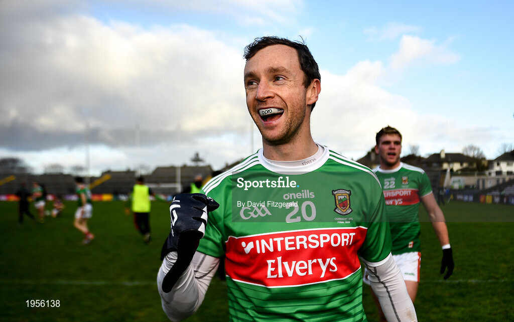 15 November 2020; Keith Higgins of Mayo celebrates following the Connacht GAA Football Senior Championship Final match between Galway and Mayo at Pearse Stadium in Galway. Photo by David Fitzgerald/Sportsfile