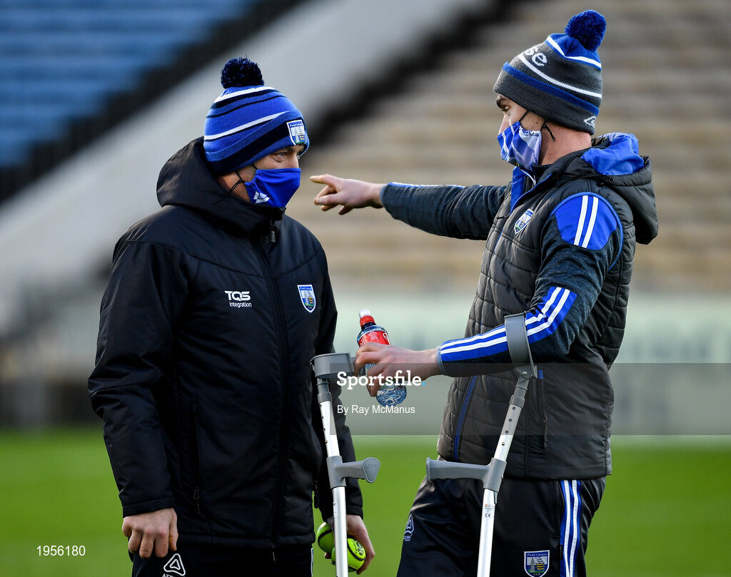 15 November 2020; Waterford manager Liam Cahill, left, and Pauric Mahony of Waterford before the Munster GAA Hurling Senior Championship Final match between Limerick and Waterford at Semple Stadium in Thurles, Tipperary. Photo by Ray McManus/Sportsfile