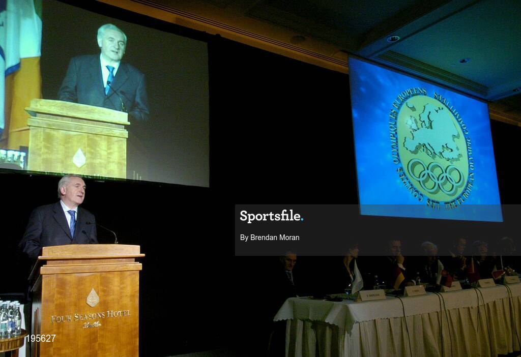 2 December 2005; An Taoiseach Bertie Ahern TD, addresses the delegates at the European Olympic Committee General Assembly. Four Season's Hotel, Dublin. Picture credit: Brendan Moran / SPORTSFILE