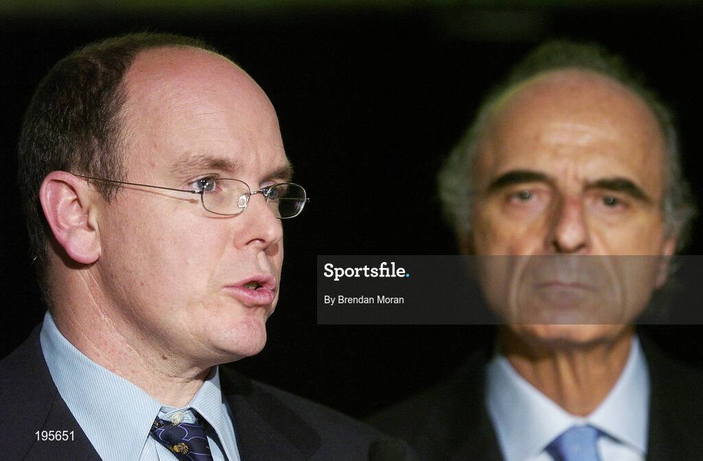 2 December 2005; SHS Prince Albert II of Monaco, in the company of Mario Pescante, President of the European Olympic Committee, speaking at the European Olympic Committee General Assembly. Four Season's Hotel, Dublin. Picture credit: Brendan Moran / SPORTSFILE