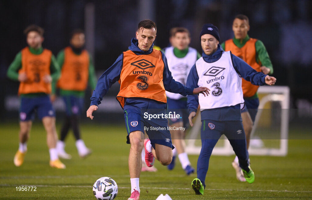 16 November 2020; Players, from left, Aaron McEneff, Jack Byrne and Graham Burke during a Republic of Ireland training session at FAI National Training Centre in Abbotstown, Dublin. Photo by Stephen McCarthy/Sportsfile