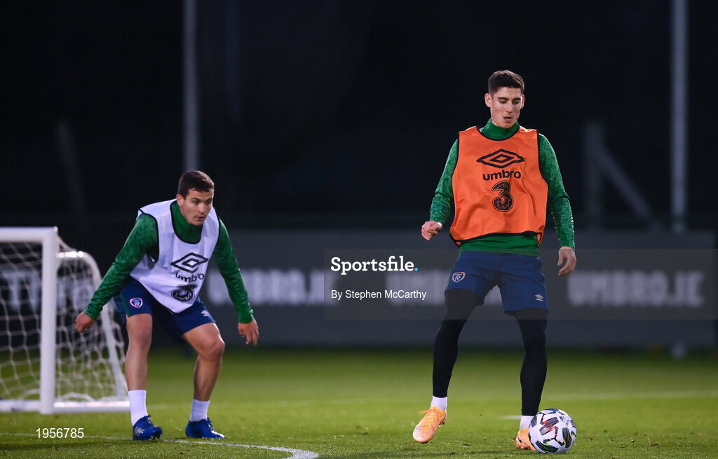 16 November 2020; Callum O’Dowda, right, and Josh Cullen during a Republic of Ireland training session at the FAI National Training Centre in Abbotstown, Dublin. Photo by Stephen McCarthy/Sportsfile