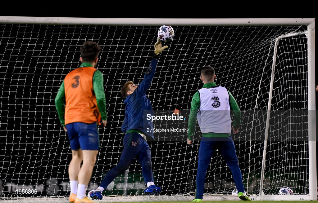 16 November 2020; Mark Travers makes a save during a Republic of Ireland training session at the FAI National Training Centre in Abbotstown, Dublin. Photo by Stephen McCarthy/Sportsfile