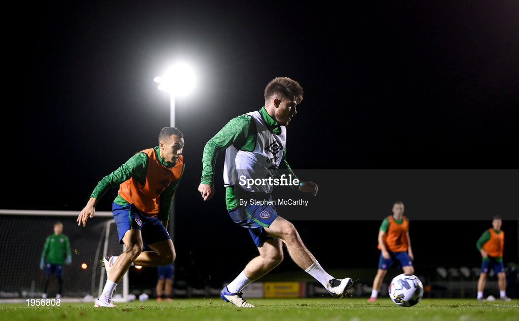 16 November 2020; Ryan Manning and Graham Burke, left, during a Republic of Ireland training session at the FAI National Training Centre in Abbotstown, Dublin. Photo by Stephen McCarthy/Sportsfile