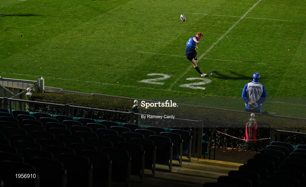 16 November 2020; Ciarán Frawley of Leinster kicks a conversion during the Guinness PRO14 match between Leinster and Edinburgh at RDS Arena in Dublin. Photo by Ramsey Cardy/Sportsfile
