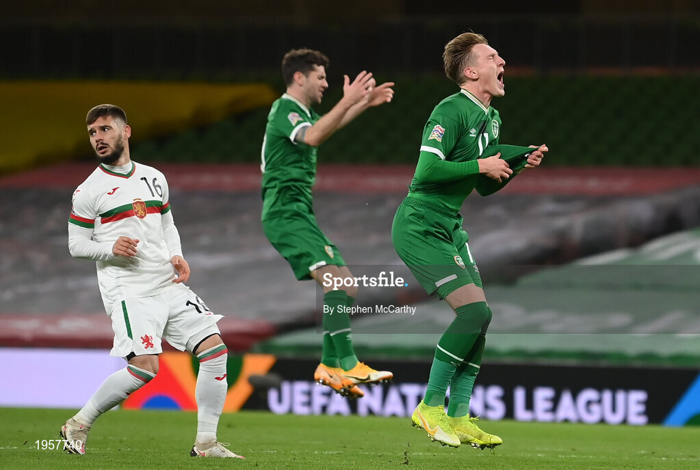 18 November 2020; Ronan Curtis of Republic of Ireland reacts after a missed opportunity on goal during the UEFA Nations League B match between Republic of Ireland and Bulgaria at the Aviva Stadium in Dublin. Photo by Stephen McCarthy/Sportsfile