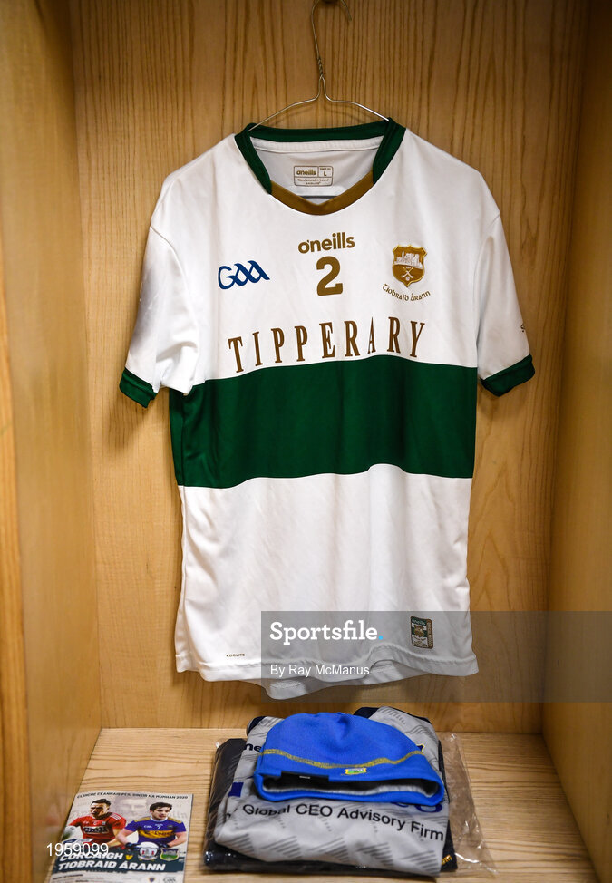 22 November 2020; The jersey to be worn by Alan Campbell of Tipperary in the dressingroom before the Munster GAA Football Senior Championship Final match between Cork and Tipperary at Páirc Uí Chaoimh in Cork. Photo by Ray McManus/Sportsfile