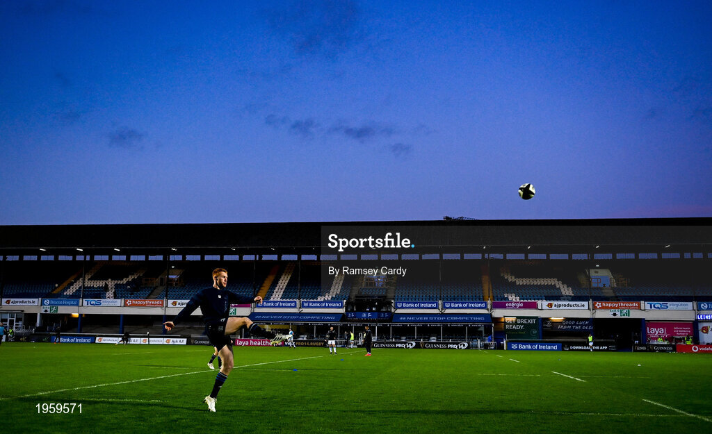 22 November 2020; Ciarán Frawley of Leinster warms up ahead of the Guinness PRO14 match between Leinster and Cardiff Blues at the RDS Arena in Dublin. Photo by Ramsey Cardy/Sportsfile