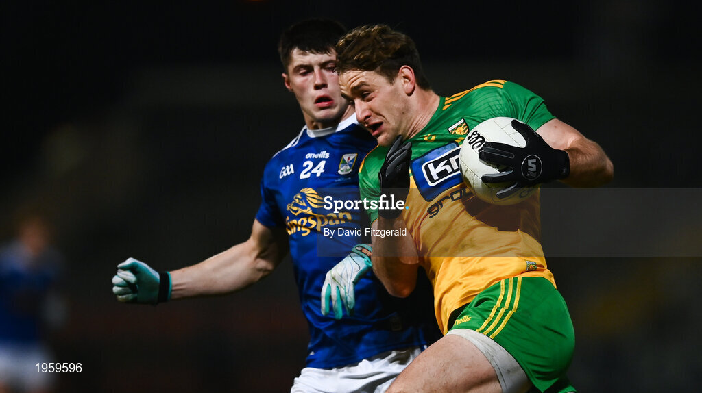22 November 2020; Hugh McFadden of Donegal in action against James Smith of Cavan during the Ulster GAA Football Senior Championship Final match between Cavan and Donegal at Athletic Grounds in Armagh. Photo by David Fitzgerald/Sportsfile