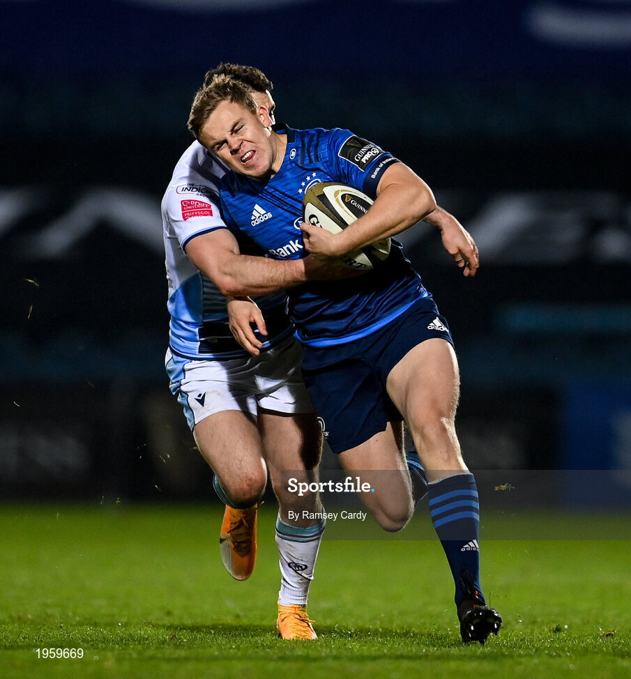 22 November 2020; Michael Silvester of Leinster is tackled by Tomos Williams of Cardiff Blues during the Guinness PRO14 match between Leinster and Cardiff Blues at the RDS Arena in Dublin. Photo by Ramsey Cardy/Sportsfile