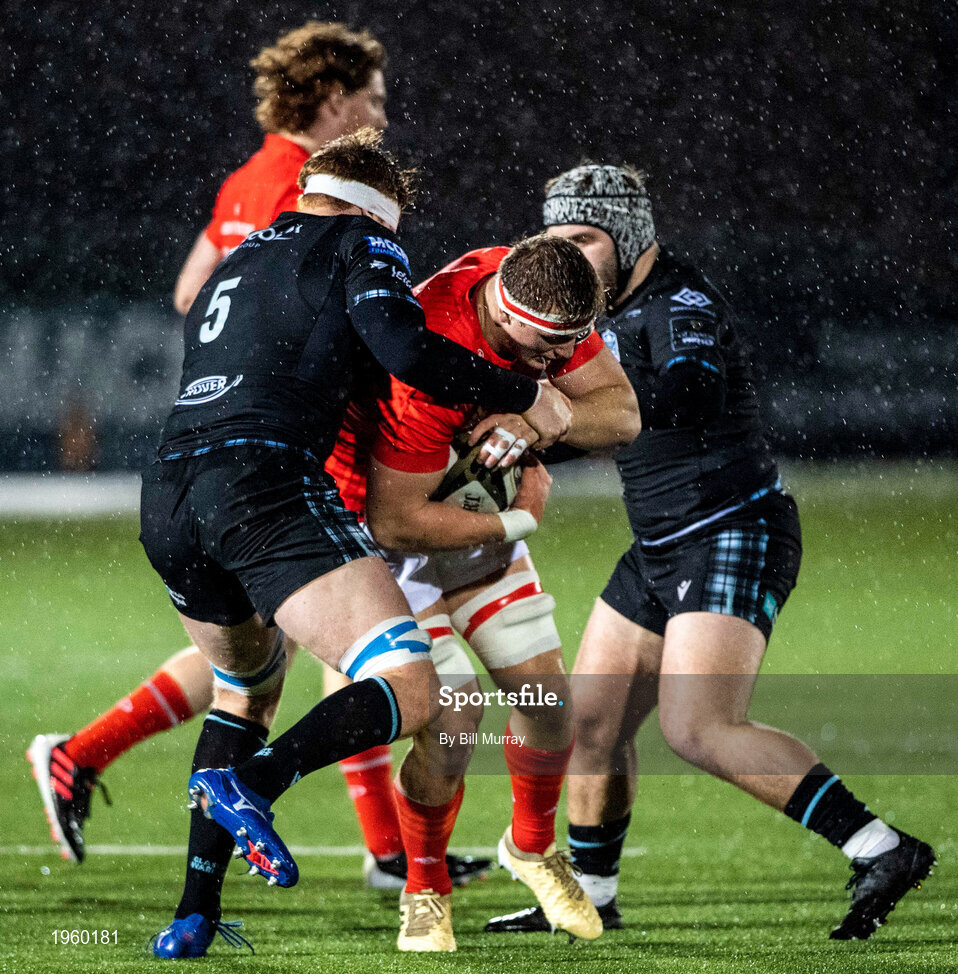 23 November 2020; Gavin Coombes of Munster is tackled by Rob Harley of Glasgow Warriors during the Guinness PRO14 match between Glasgow Warriors and Munster at Scotstoun Stadium in Glasgow, Scotland. Photo by Bill Murray/Sportsfile